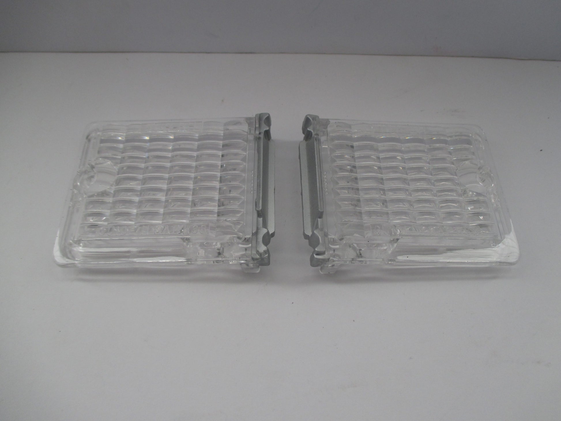New pair of quality reproduction clear reverse light lenses.