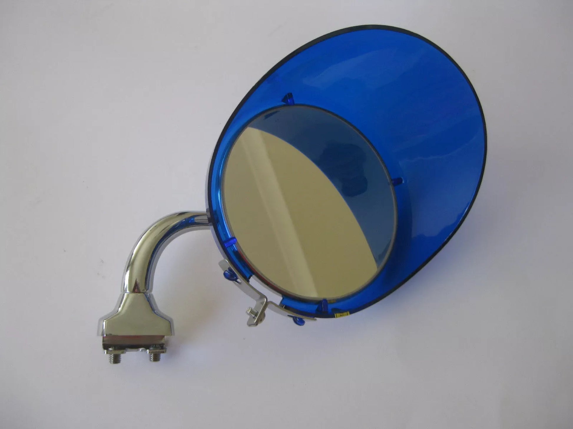 New 4″ blue plastic mirror visor.