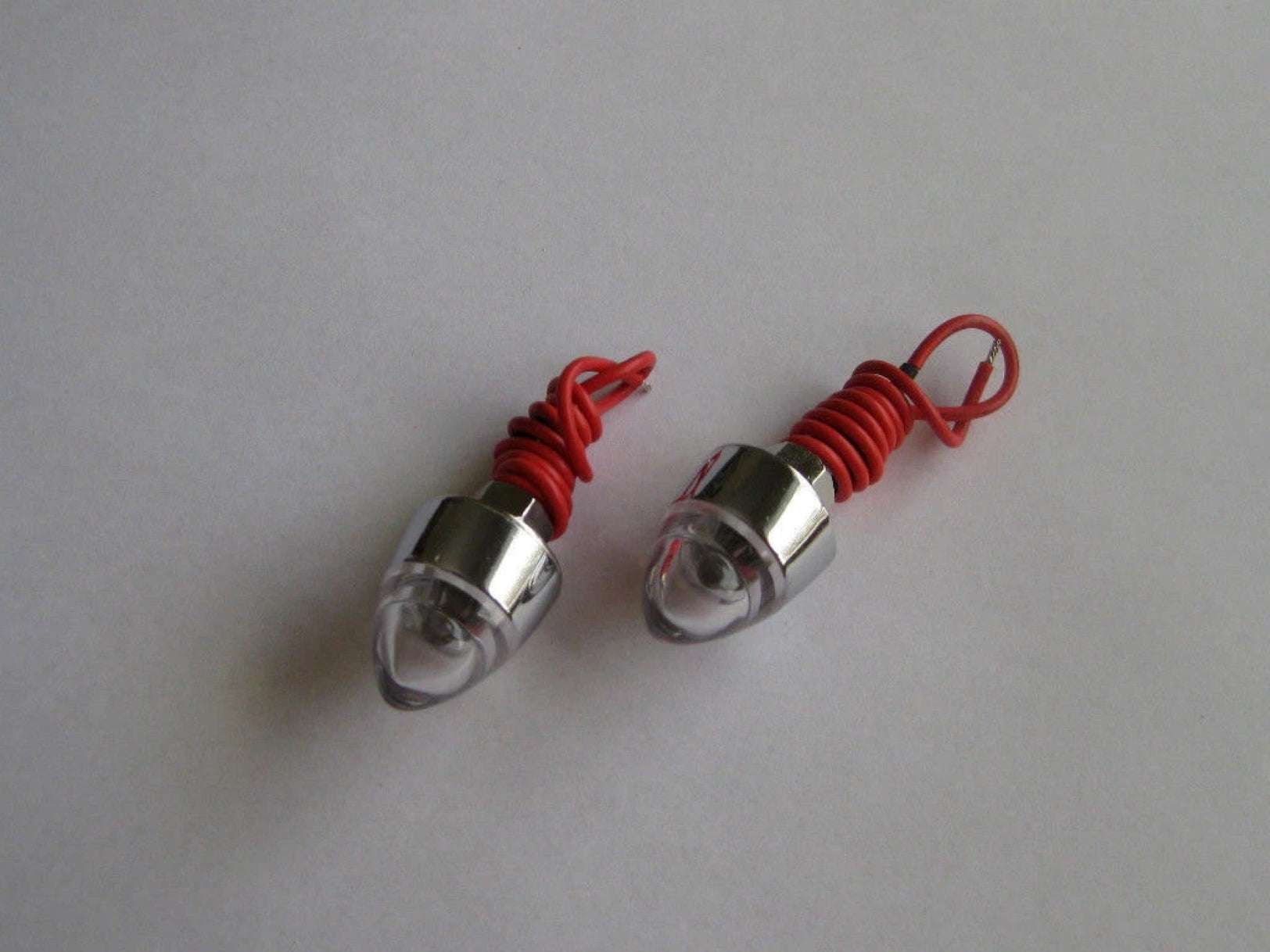 Pair of white lighted bullet number plate bolts.